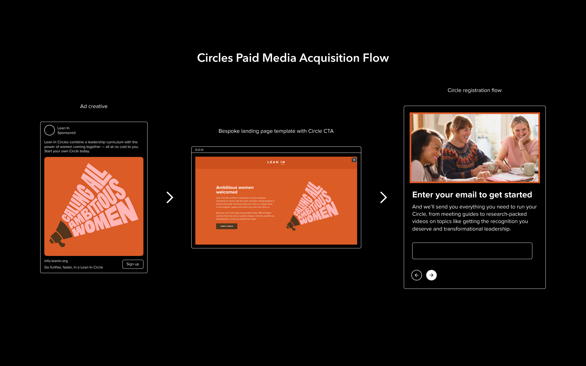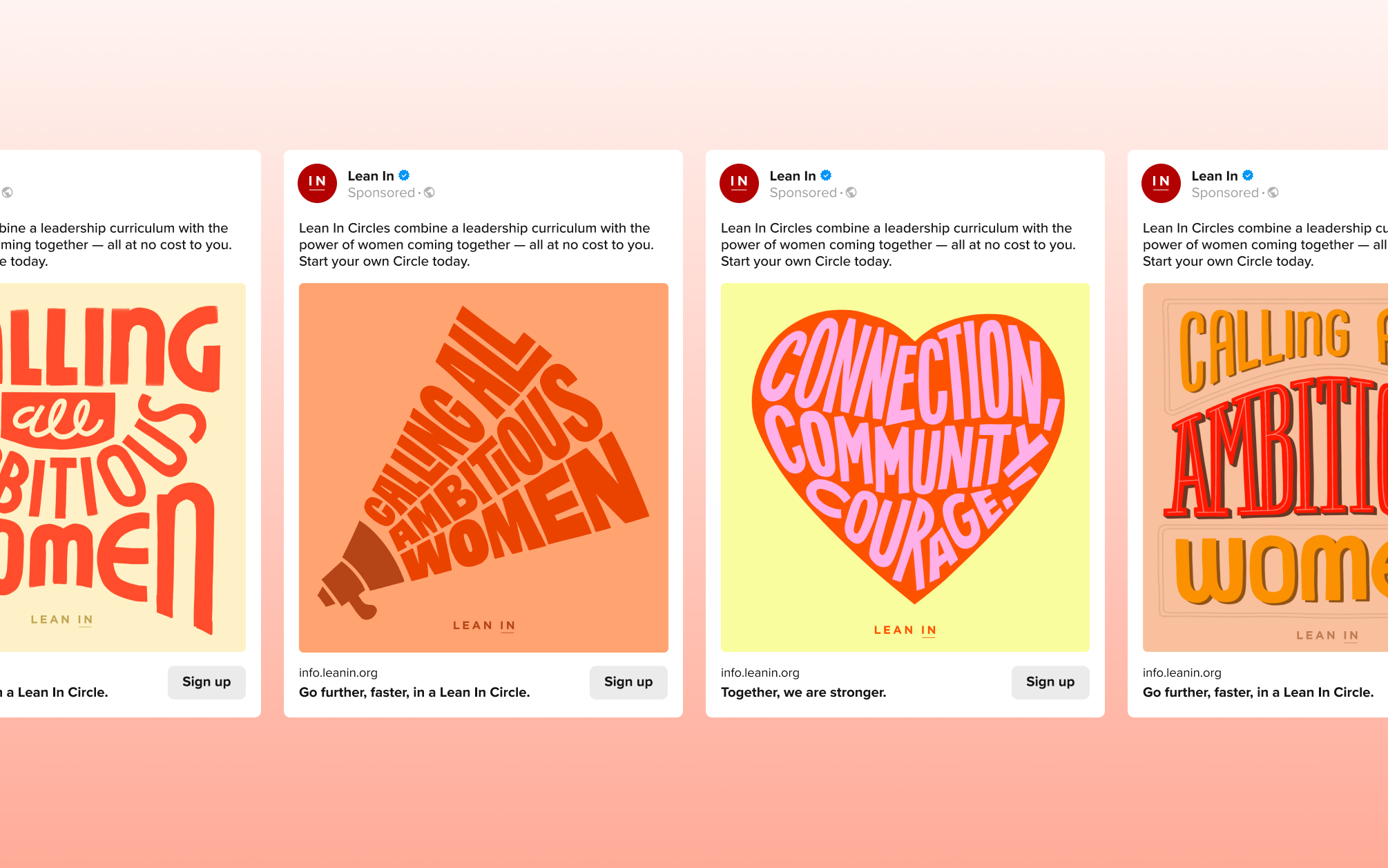 Identity, Paid Media, Digital, LetteringLean In Circles are small peer groups that help women build community and grow together. I established the visual direction for the program, emphasizing warmth, empowerment, and approachability.