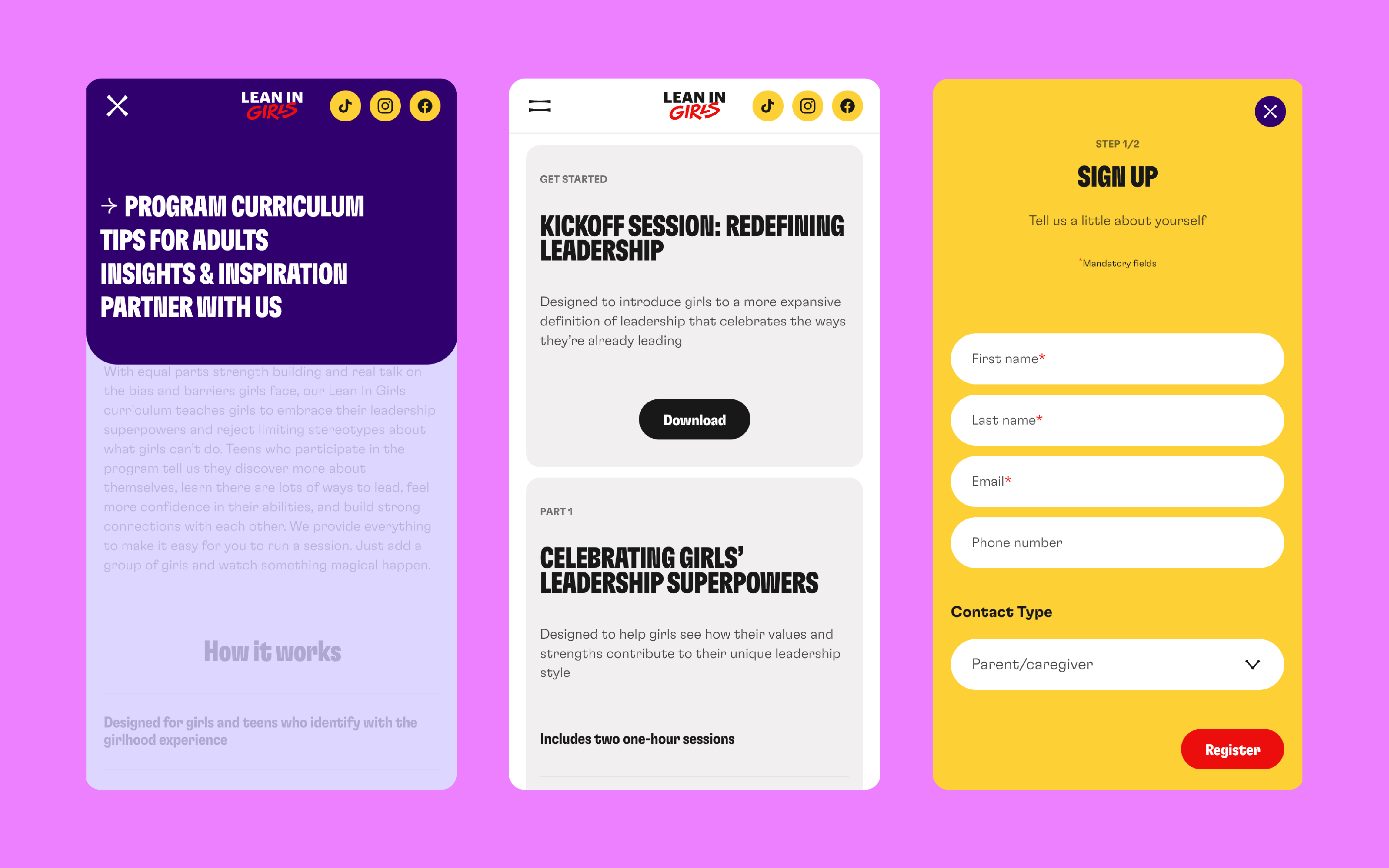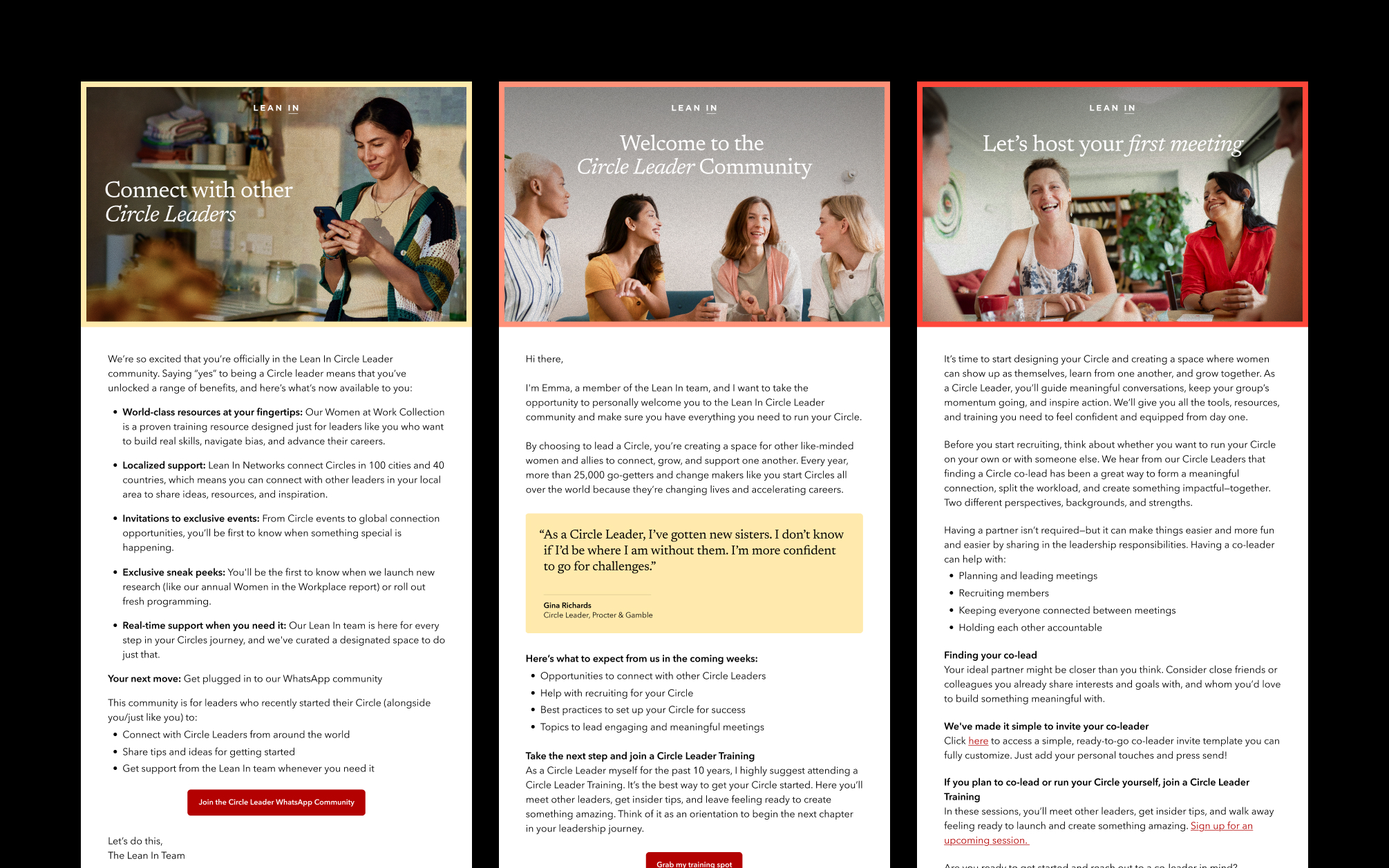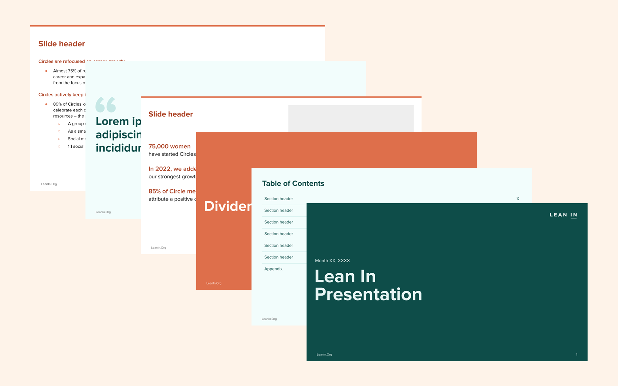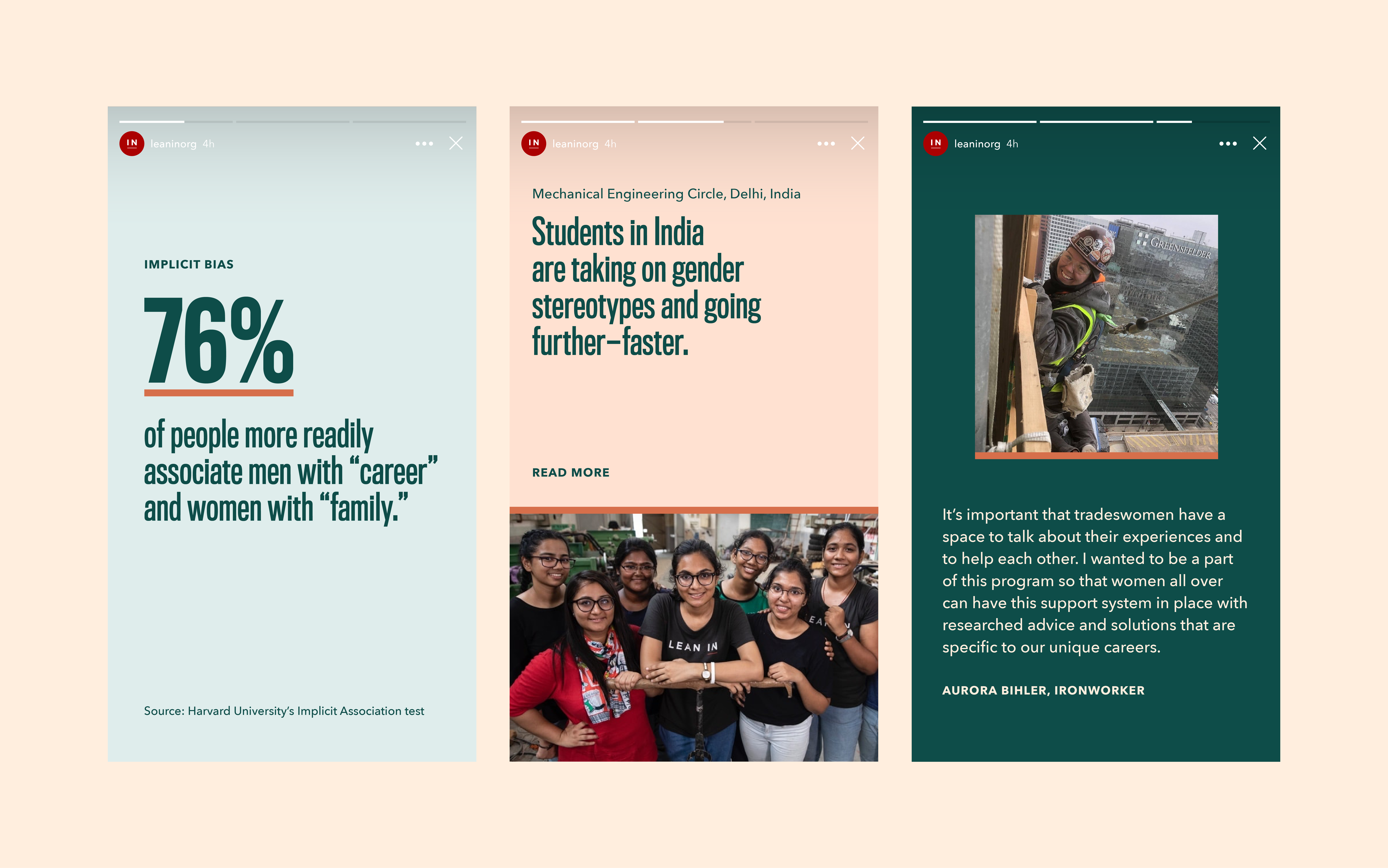 A new visual identity was created to distinguish this initiative while maintaining a connection to the existing Lean In brand, emphasizing warmth and approachability.